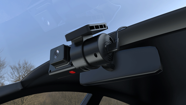 The small form factor allows discreet installation behind the rearview mirror without blocking the driver’s view.